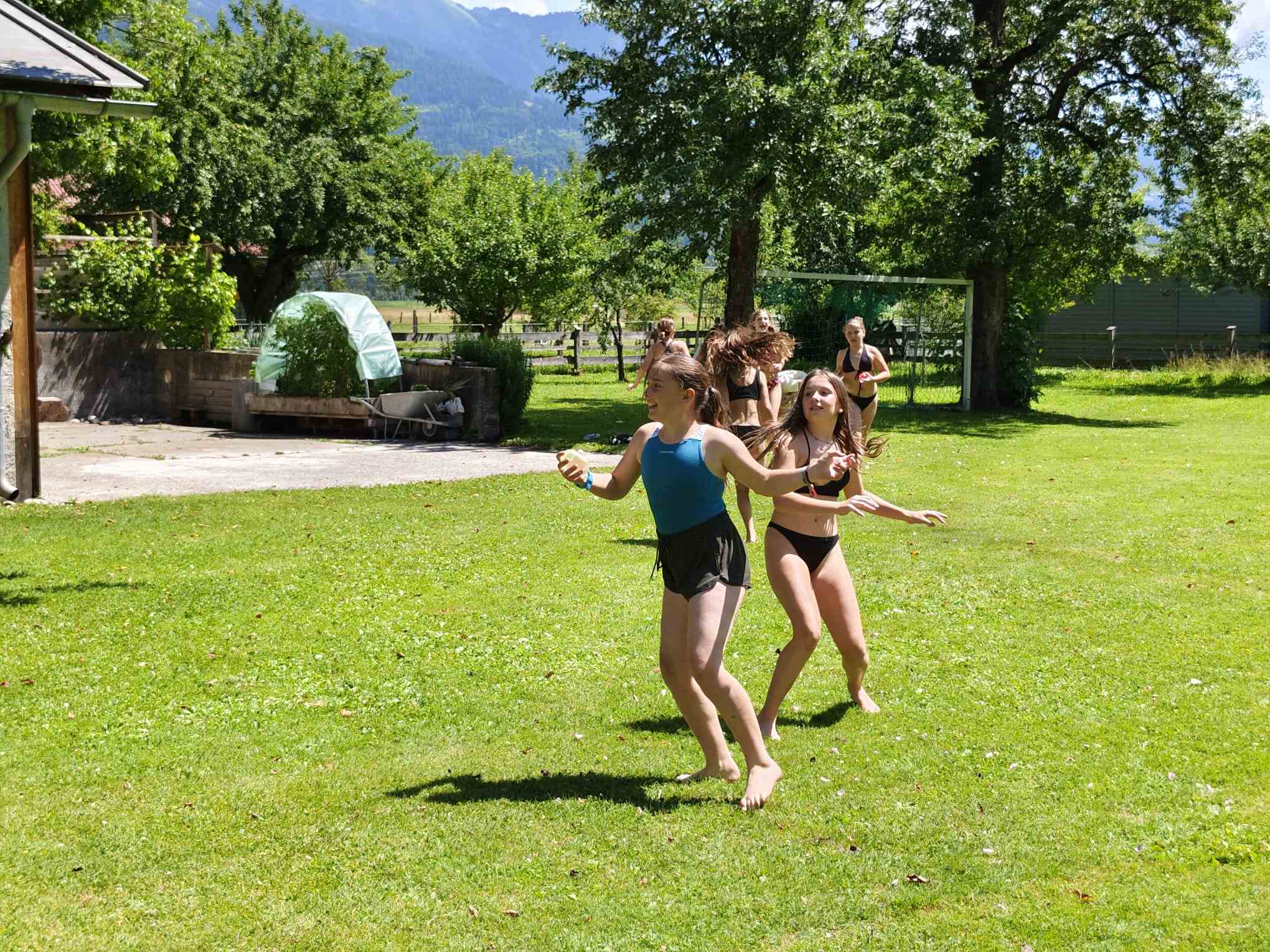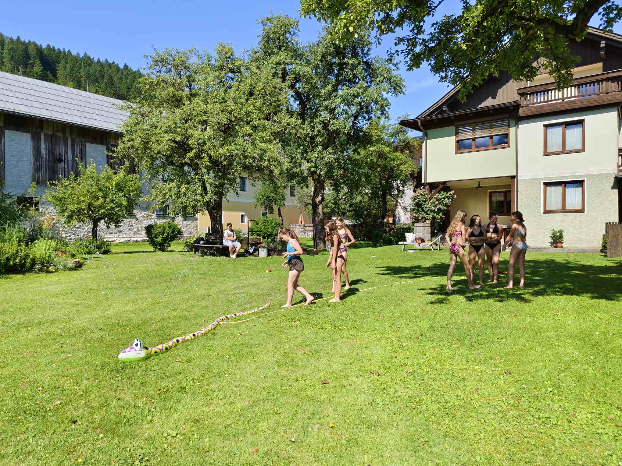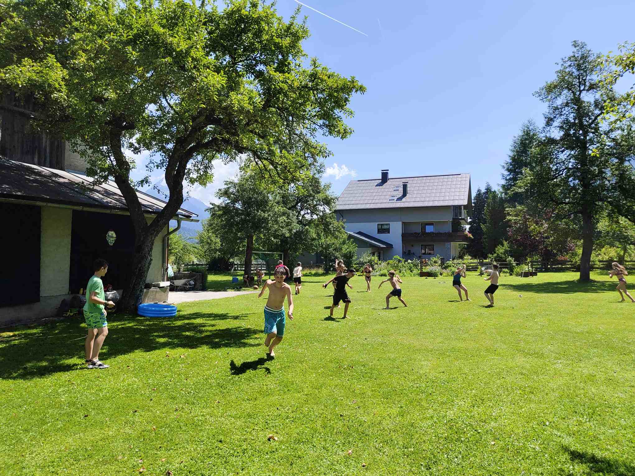 Dort erwartete sie ein abwechslungsreicher und fröhlicher Vormittag. Im großzügigen Garten konnten sie Fußball und Federball spielen, sich beim Wassersprenger oder mit Wasserbomben abkühlen.