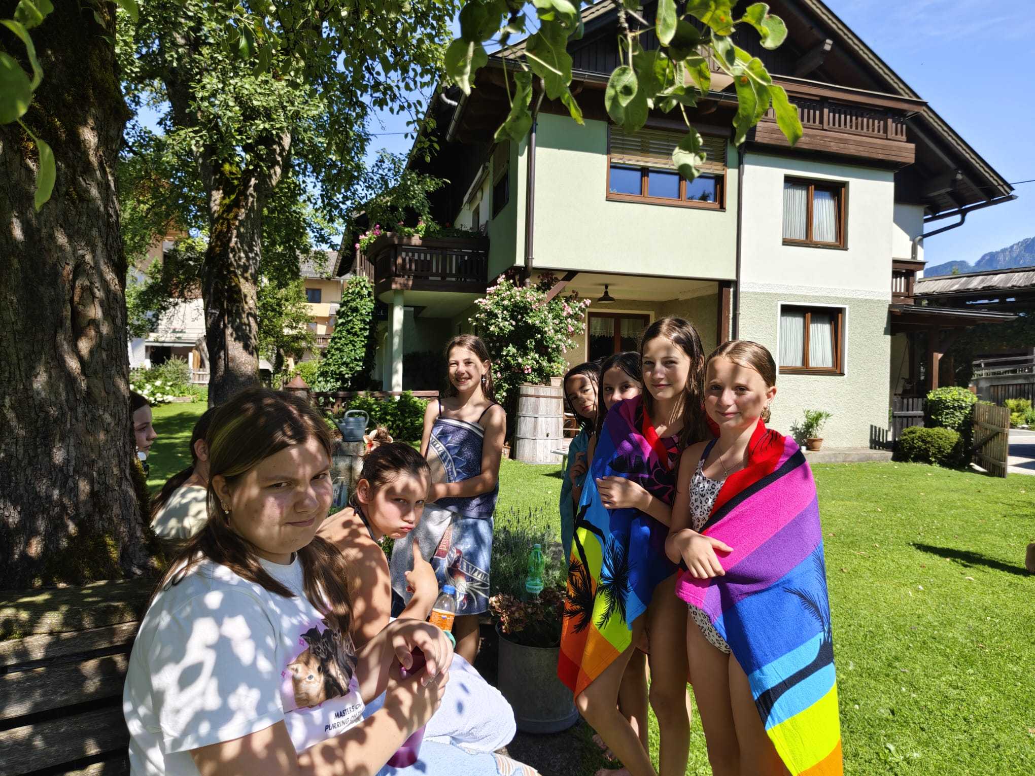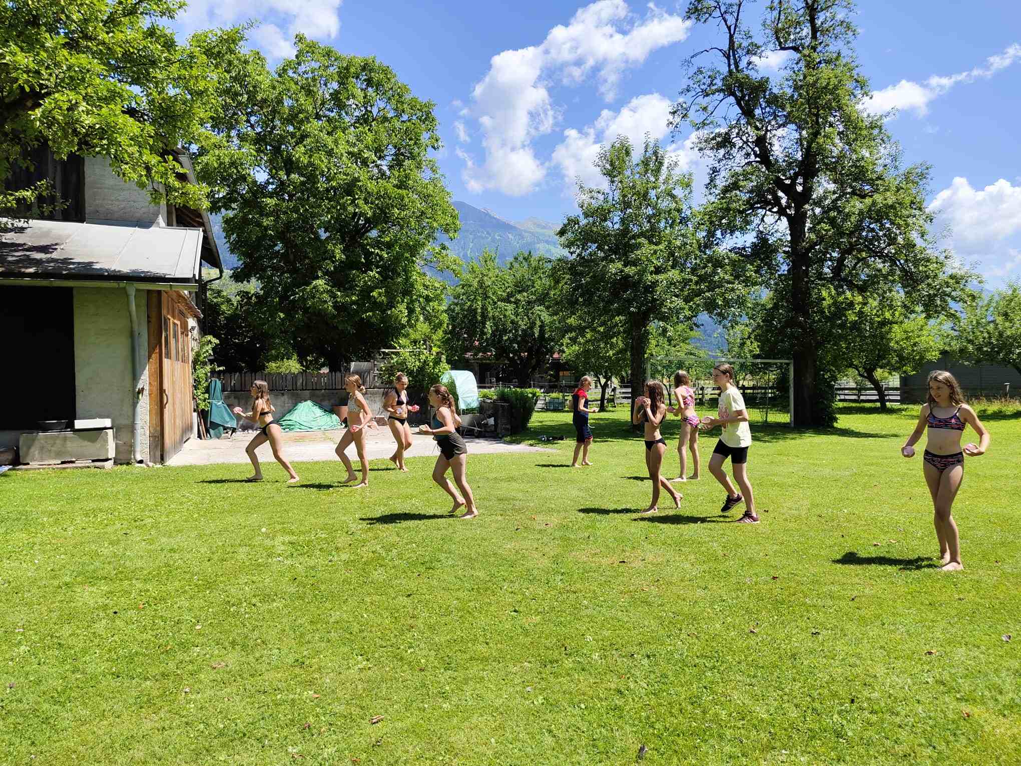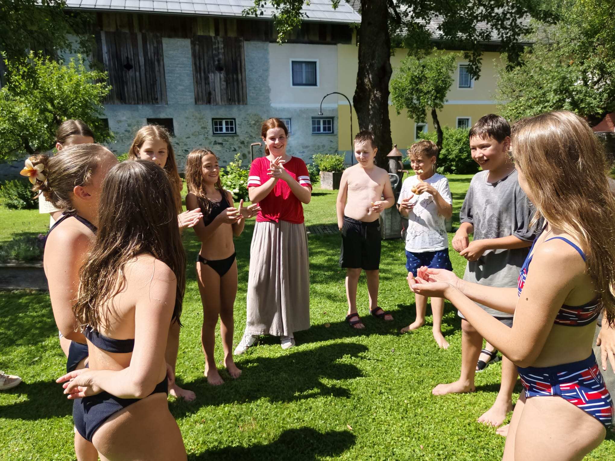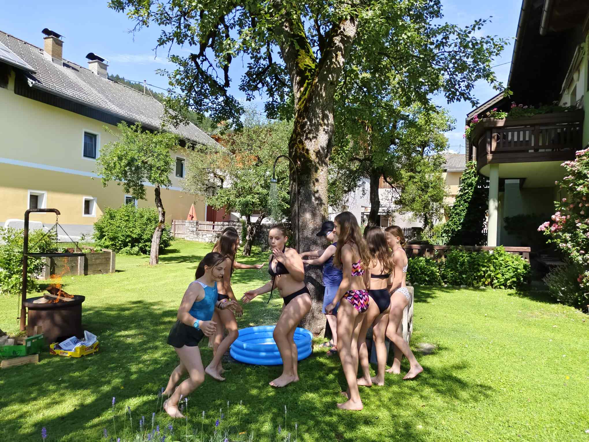 Dort erwartete sie ein abwechslungsreicher und fröhlicher Vormittag. Im großzügigen Garten konnten sie Fußball und Federball spielen, sich beim Wassersprenger oder mit Wasserbomben abkühlen.