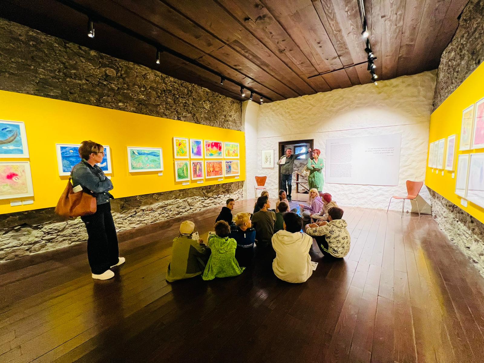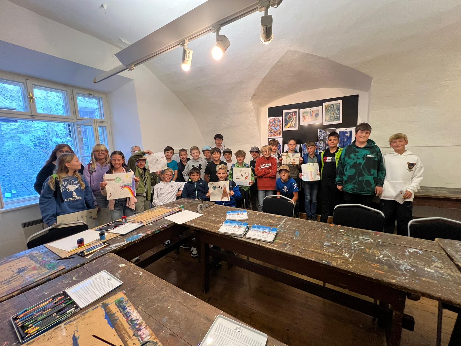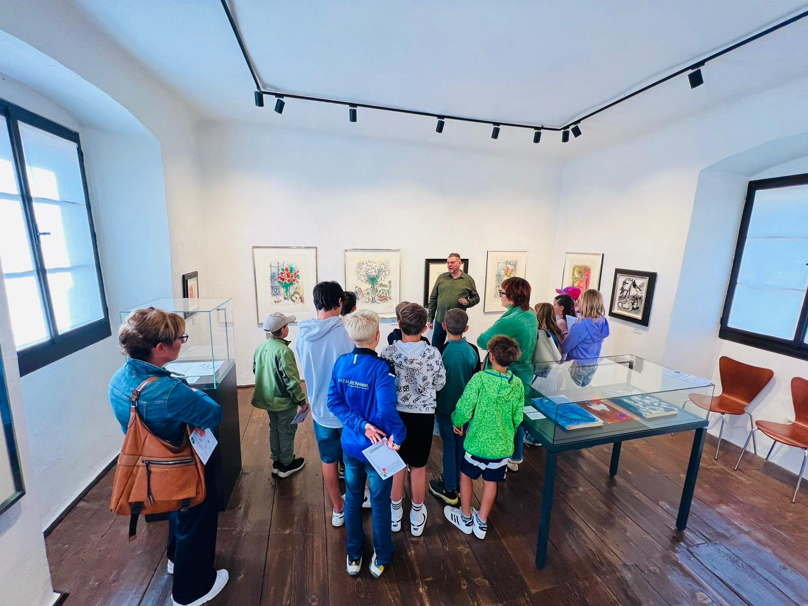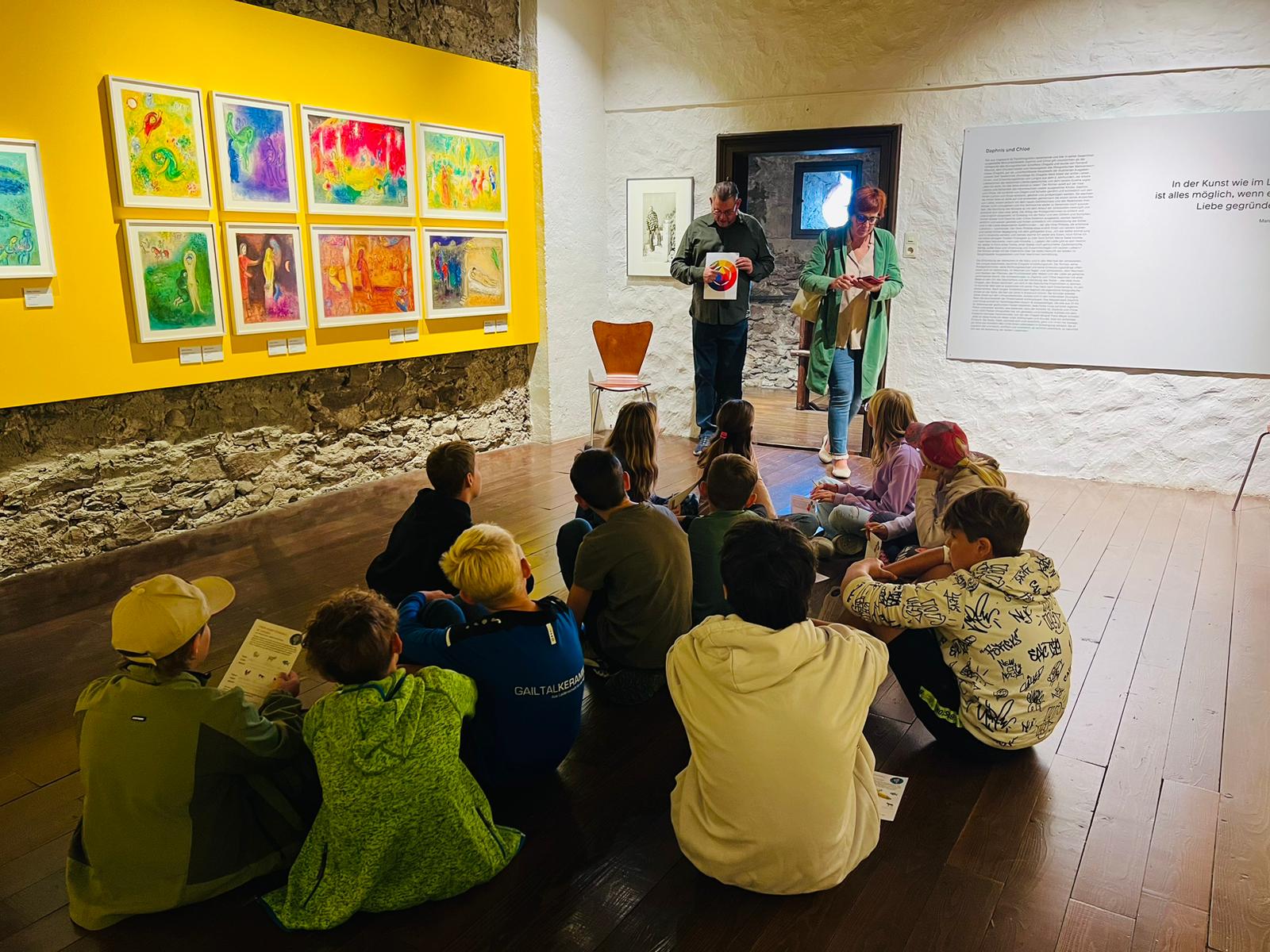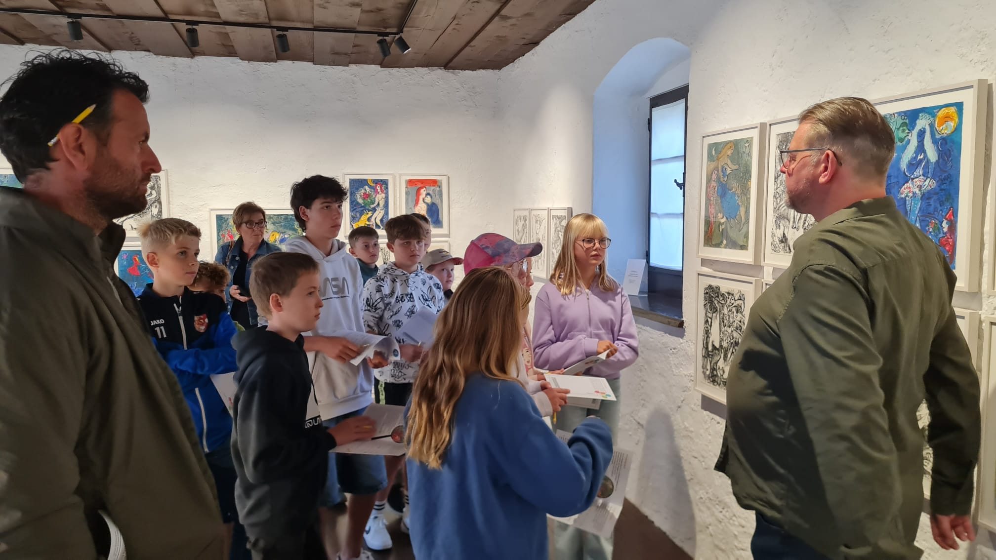 Die Kinder erhielten Informationen über das Leben und Wirken des Künstlers sowie über die Entstehung und Vervielfältigung von Farblithografien. Beim Betrachten der Werke wurden sie auf Bildelemente wie fliegende und auf den Kopf gestellte Menschen und Tiere aufmerksam.