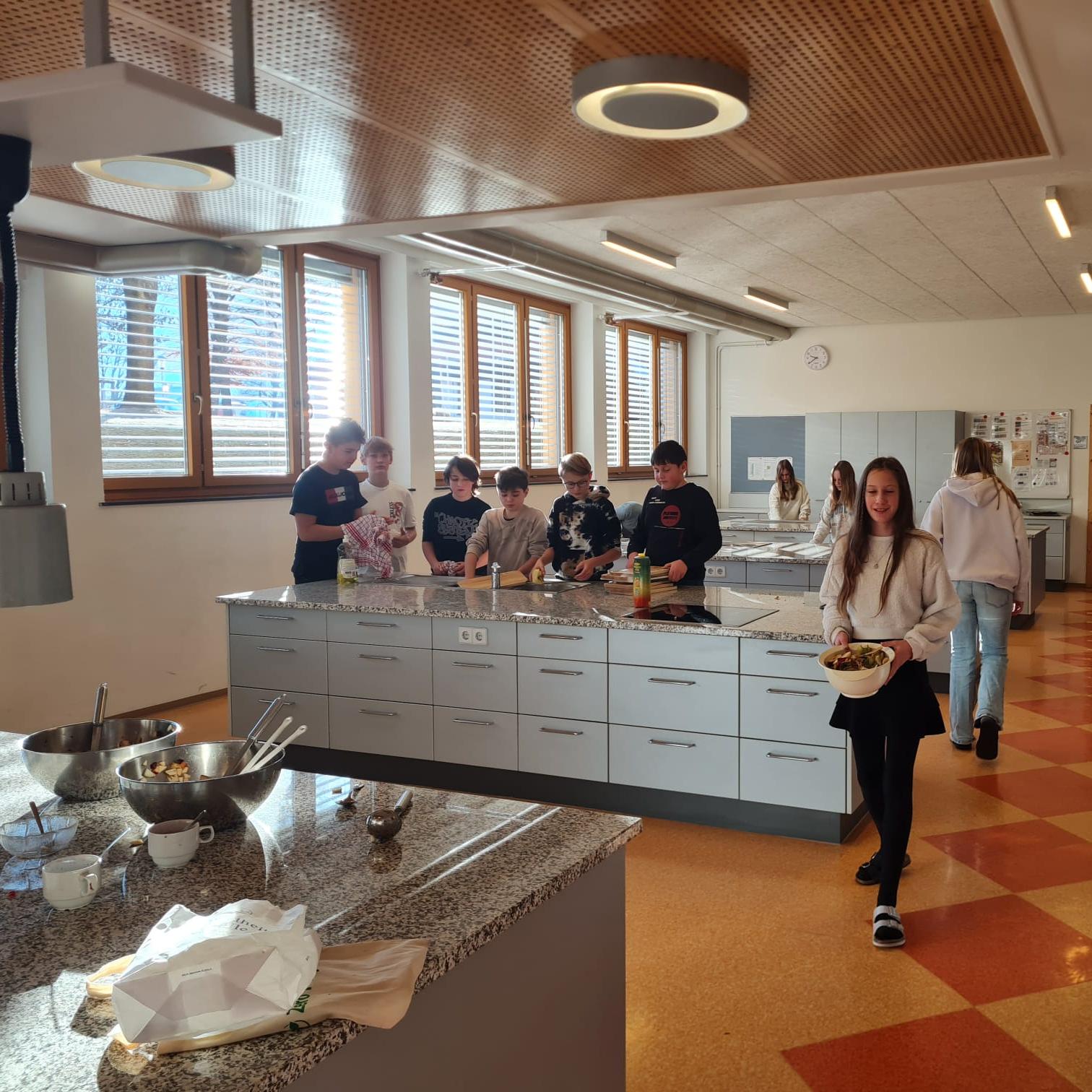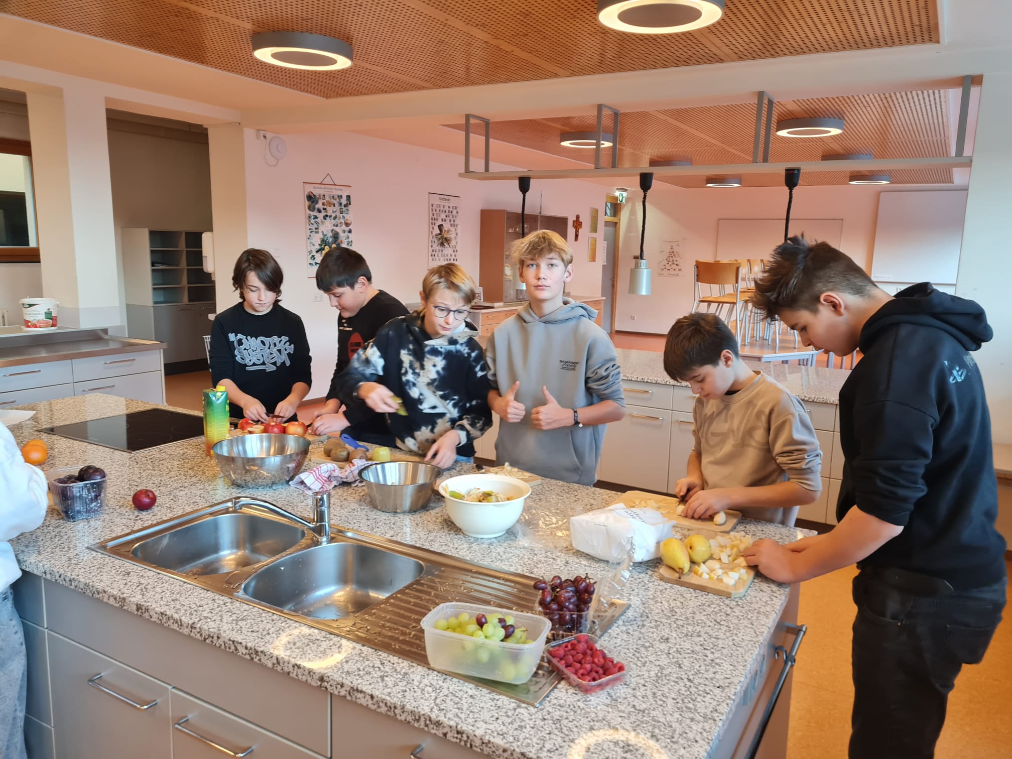 Die Italienisch Schülerinnen und Schüler der 3ab Gruppe haben eine lustige Unterrichtsstunde in der Schulküche verbracht.